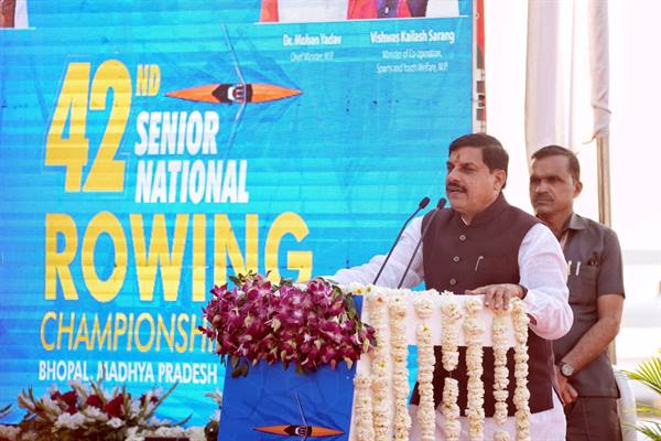 मुख्यमंत्री डॉ. मोहन यादव ने कहा है कि प्रधानमंत्री श्री नरेन्द्र मोदी के मार्गदर्शन में भारत ने ओलम्पिक से लेकर एशियाड जैसी कई प्रतियोगिताओं में उल्लेखनीय प्रदर्शन किया है। मध्यप्रदेश सहित देशभर के खिलाड़ियों ने वैश्विक स्तर पर खेलों में नए कीर्तिमान स्थापित किए हैं। खेलों से युवाओं में नेतृत्व कौशल एवं कई तरह की प्रतिभाओं का विकास होता है। प्रदेश सरकार युवाओं के कौशल विकास और खेलों को बढ़ावा देने के लिए कृत-संकल्पित है। मुख्यमंत्री डॉ. यादव ने सोमवार को 42वीं नेशनल सीनियर रोइंग चैंपियनशिप के शुभारंभ अवसर पर उपस्थित जनसमूह एवं खिलाड़ियों को संबोधित करते हुए यह विचार व्यक्त किए।